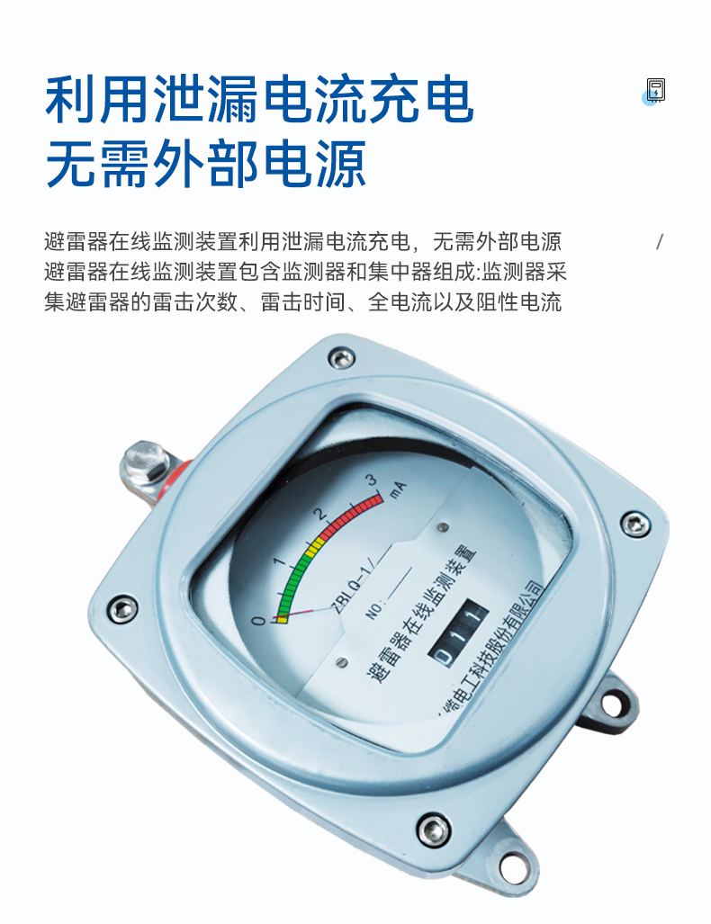 Ø 避雷器在线监测装置利用泄漏电流充电,无需外部电源。