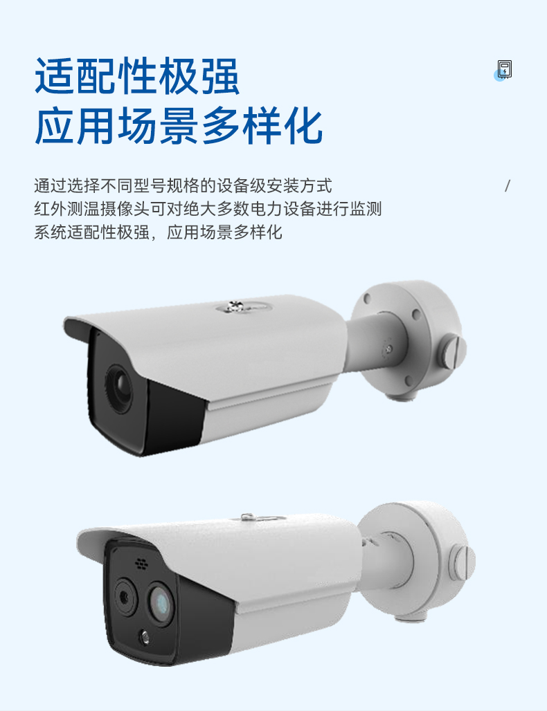 Ø 多样性:通过选择不同型号规格的设备及安装方式,红外测温摄像头可以对绝大多数电力设备进行监测。