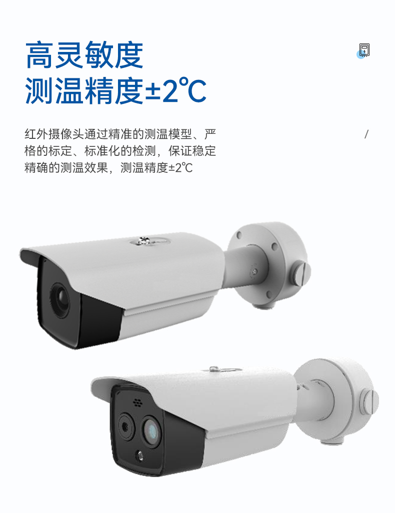 Ø 准确性:红外测温摄像头通过精准的测温模型、严格的标定、标准化的检测,保证稳定精确的测温效果,测温精度±2C。