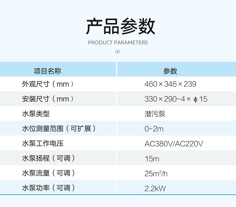 Ø 保护功能:具备欠压、过压、过载、短路、缺相等保护功能,及时脱扣保护水泵,同时根据选用水泵不同,参数设置不同。