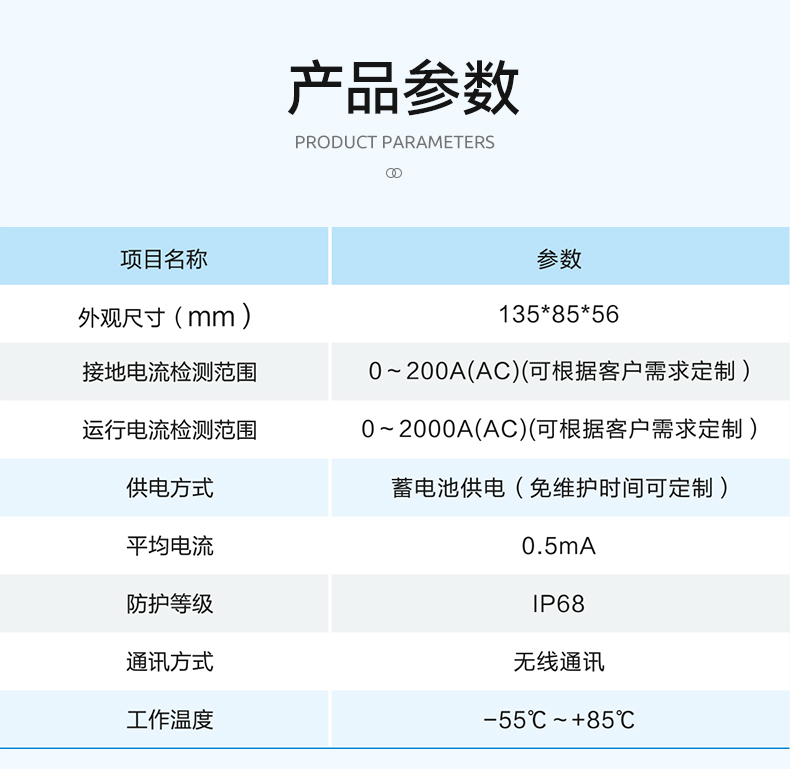 Ø 超低功耗:监测装置定时采集电流数据,功耗低。