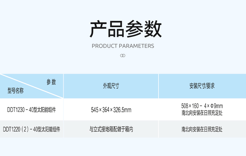 由太阳能板、控制器、蓄电池组成,太阳能板将光能转换为微电能(组件效率9.7%),经控制器存储在蓄电池中,蓄电池选用体积小、能量密度高、寿命长的三元锂电池,控制器实现欠压、过压、欠载、过载、过冲、过放、短路、反接、过温等保护功能,并实现整个装置电源逻辑控制。
