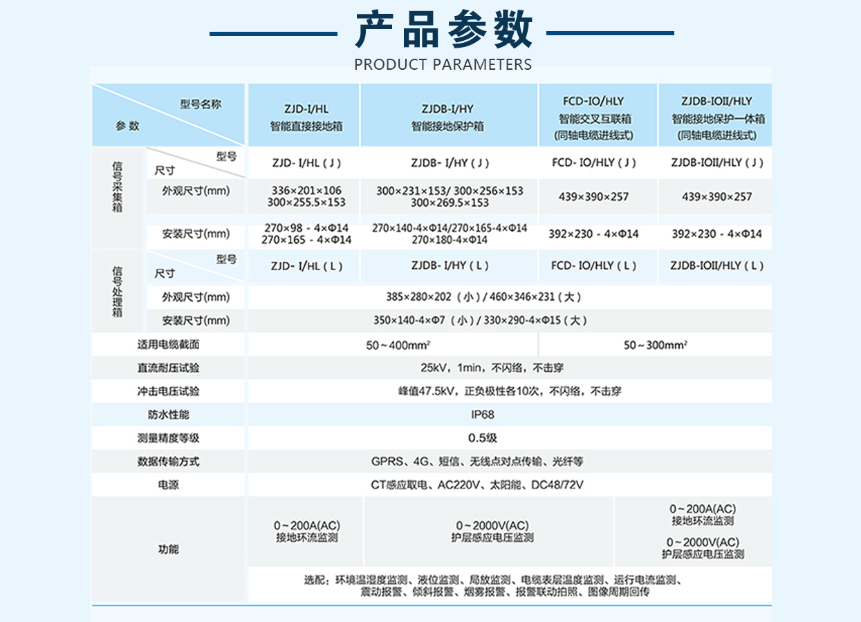 智能接地箱可对电缆金属护层接地环流、感应电压进行监测以辅助判断电力电缆运行状况,并可对安装环境温湿度、接头井水位等参数进行监测,加装摄像头、震动传感器、倾斜传感器,实现对现场区域的全面布防。