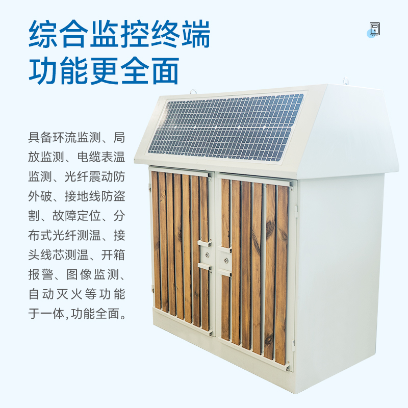 Ø电缆系统综合监控终端具备:环流监测、局放监测、电缆表温监测、光纤震动防外破、接地线防盗割、故障定位、分布式光纤测温、接头线芯测温、开箱报警、图像监测、自动灭火等功能于—体,功能全面。